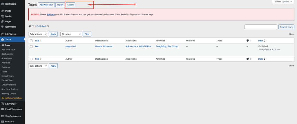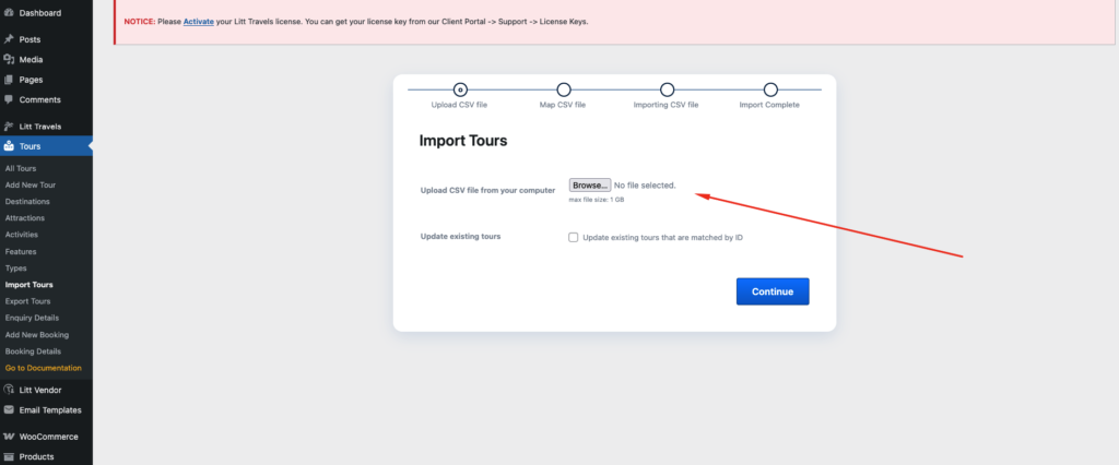 Note: Litt Travels also allows you to update tours whose IDs already exist on the website’s database. Toggle the update existing tours button for that.